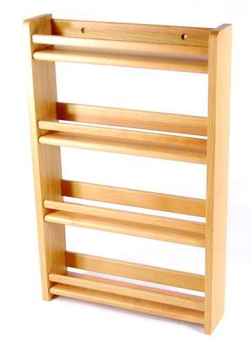 Organize your spices or other small items in this space-saving 4-shelf spice bottle rack. Handmade of alderwood with a smooth satin lacquer finish, this efficient spice holder and organizer is designed to hold 6 standard spice jars (up to 4" high) per tier. Jars not included. Also handy for storing frequently used small kitchen supplies and cooking utensils that often get lost in crowded drawers and on cluttered cupboard shelves. This wooden spice rack is designed to be either mounted on the inside of a cabinet door or placed on a counter. The wall mount spice rack can also be used for keeping nail polish bottles and other grooming supplies organized in your bathroom cabinets or on vanity counters. Useful for displaying your collectibles, too. Available in 2, 3 and 4 tier models. Add this attractive Alder Wood Spice Rack to your kitchen, and keep your spices organized! Assembly level/degree of difficulty: Easy.