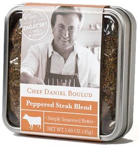 Add a sophisticated array of flavors to steak chicken ham and more with the Peppered Steak Blend Gourmet Seasoning Pack created by renowned New York chef Daniel Boulud. This seasoning blend contains four peppercorn varieties nutmeg allspice and more which will give your meals a depth of flavor they've never had before. This spice pack eliminates most of the work in gourmet cooking by measuring out the perfect balance of seasoning for you. This spice pack includes recipe suggestions for steak au poivre seared tuna steaks pepper-marinated pork chops and more. Chef Daniel Boulud Peppered Steak Blend Seasoning Pack Features Created by would famous Chef Daniel Boulud. Perfect blend of seasoning premeasured out so you can create the perfect meal without having to fight with bottle after bottle of spices. A simple way to add a delicious touch of seasoning to recipes. Seasoning pack includes an array of recipe suggestions to get you started. Impress your friends and family with gourmet